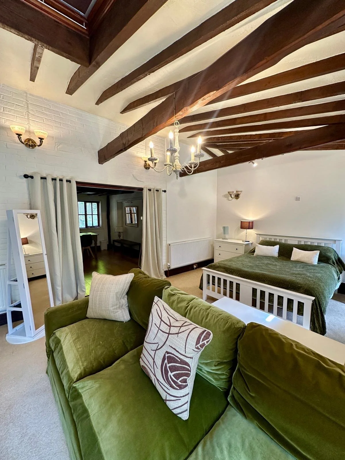 3 double bedrooms, 2 have en-suite big bathroom ( one has the largest bathtub I’ve ever seen, get the whole family in!) with bath and showers. The other has it’s own shower room.