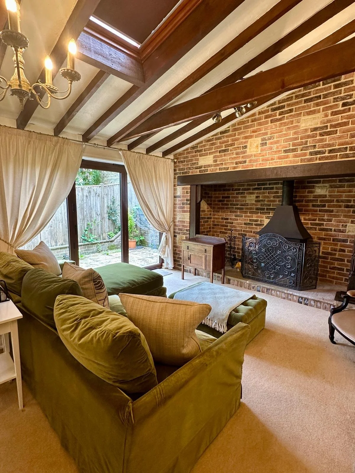 There is a big living room with a Woodburner and sunroom dining area on the ground floor.