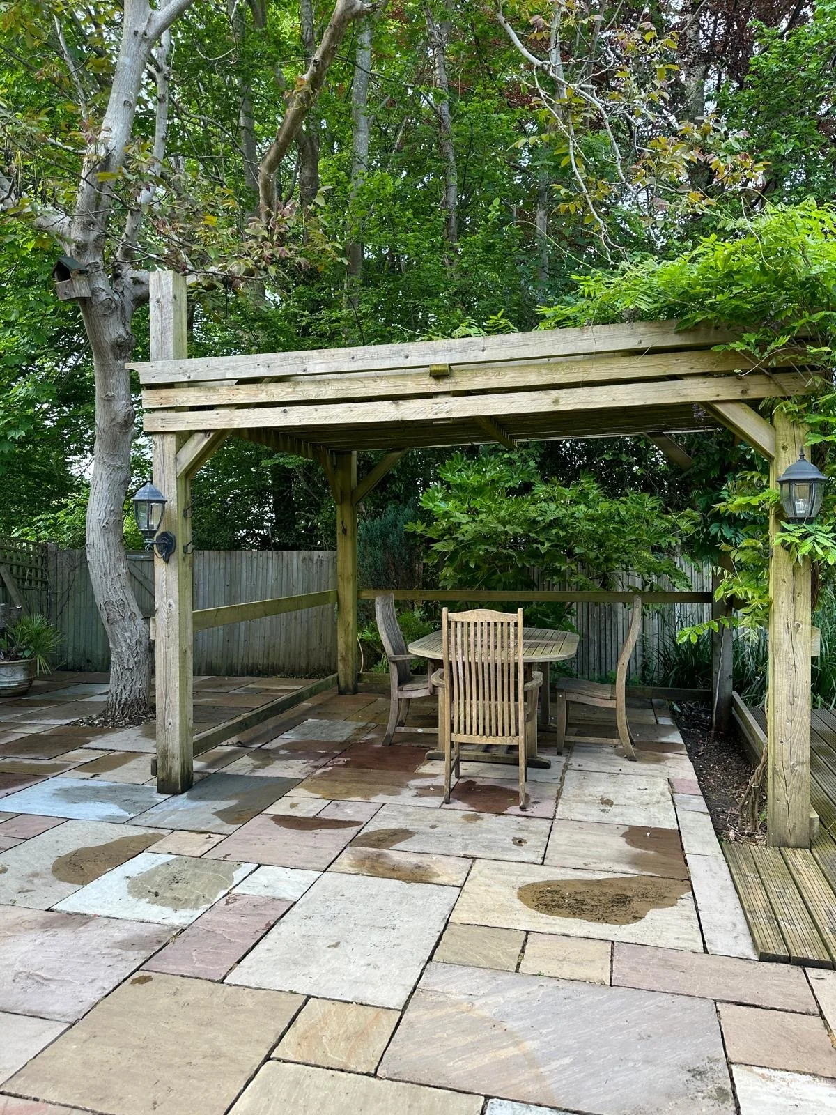 Outside the back there is a private area with seating on the decking and a gate that leads straight into the village.